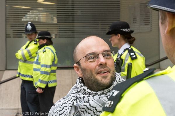 This is one of a number of posters by the Special Patrol Group for the DSEi arms fair.