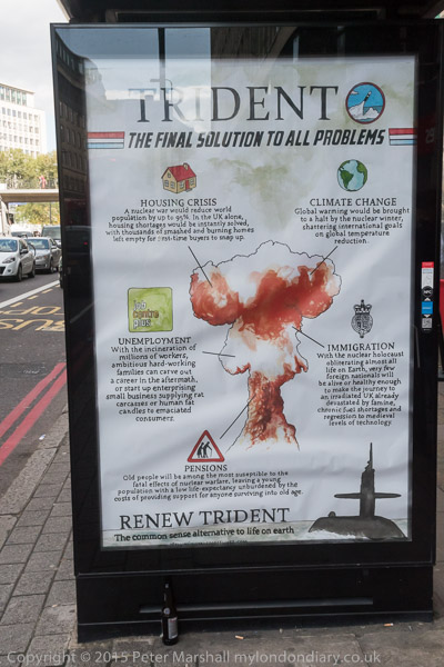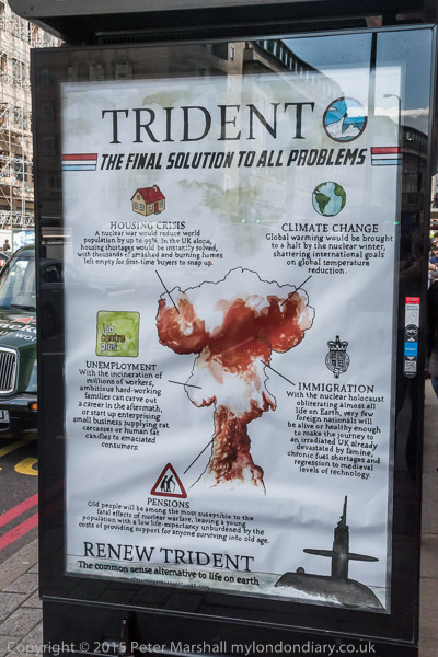 On my way home I passed a poster on a bus shelter 'Renew Trident - the common sense alternative to life on earth'