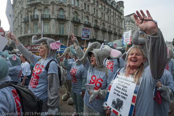 'One Every 15 minutes' 'Hunting is Cruel' ' China Shut Down Your Ivory Carving Factories'