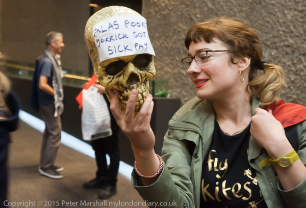 Ewa holds up Yorick's skull - Alas poor Yorick got no sick pay
