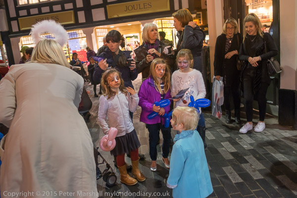 and some kids enjoying themselves with faces painted and free balloons in various shapes