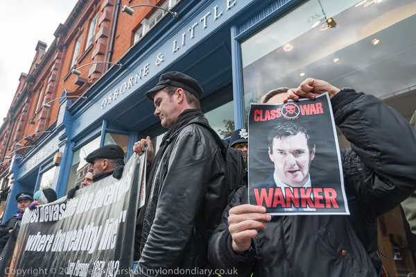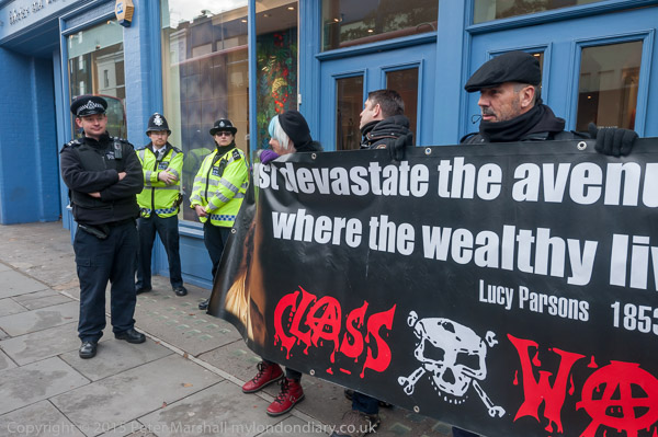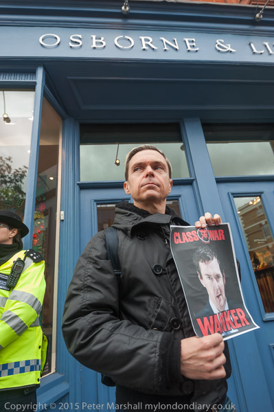 Class War arrives - and one man goes inside the shop to tell staff why they are protesting and ask them to pass