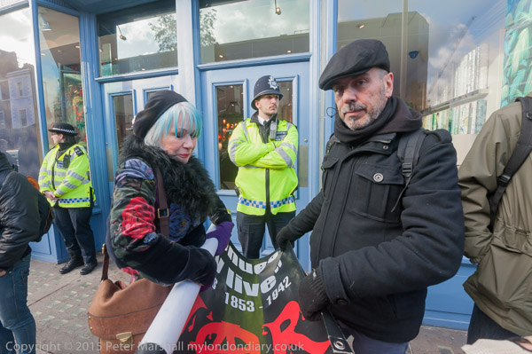 Around ten people turned up for the protest as well as two sympathetic legal observers. It was hard to count the