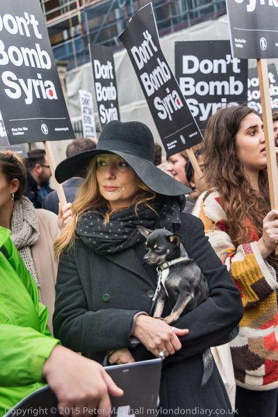 The protesters spilled out into the road towards barriers down the centre. A banner 'Human Rights for All - Calais Action'