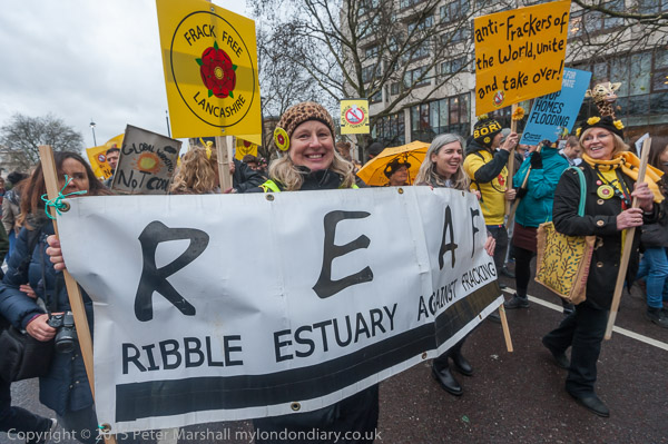 ![]() Jeremy Corbyn seems please as the march begins ![]() ![]() John McDonnel marches in front of the Momentum banner ![]() 'No More Hot Air' ![]() Another Polar Bear ![]() and other animals clap as the march goes past ![]() Two young gilrs hold a banner 'I am the Future Defending Myslef' ![]() The anti-fracking 'Nanas' from Nanashire - Tina-Louise Rothery at centre of the 3 Nanas ![]() REAL - Ribble Estuary Against Fracking and others from Frack Free Lancashire |