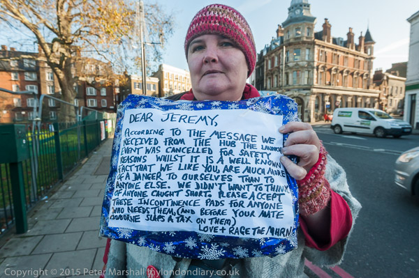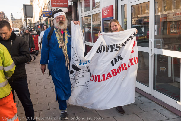 The protesters walk to meet others already outside the Southwark 'Hub' at Thames Reach Employment Academy,
