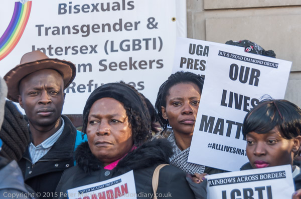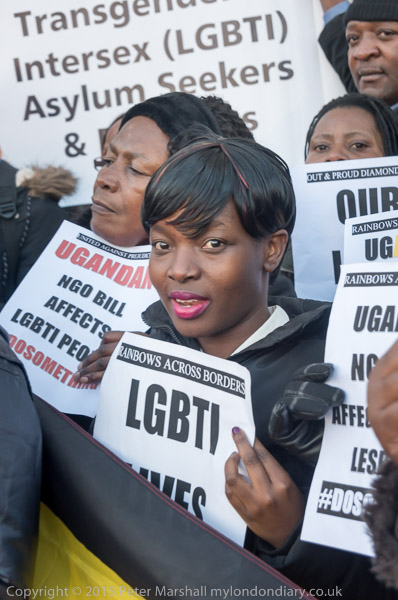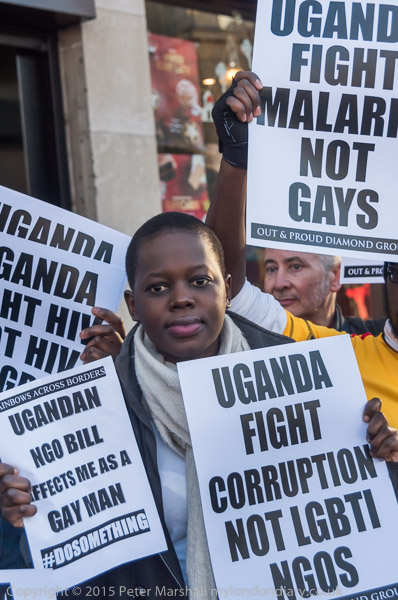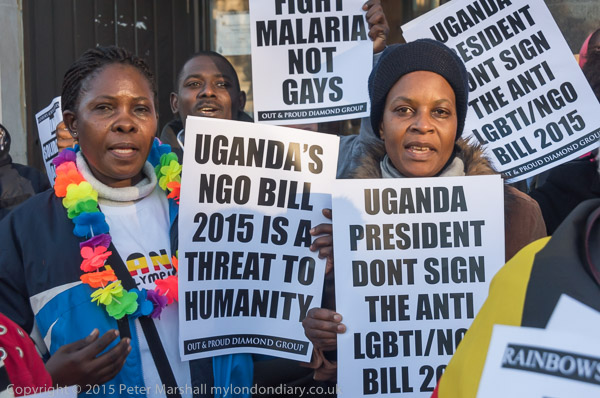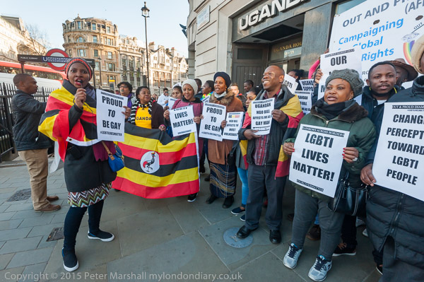 'Proud to be Gay' - the Out and Proud Diamond Group in front of Uganda House
