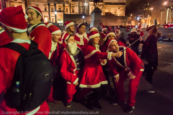 Many of those who took part in the annual Santacon crawl around London ended up in Trafalgar Square