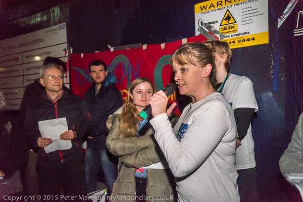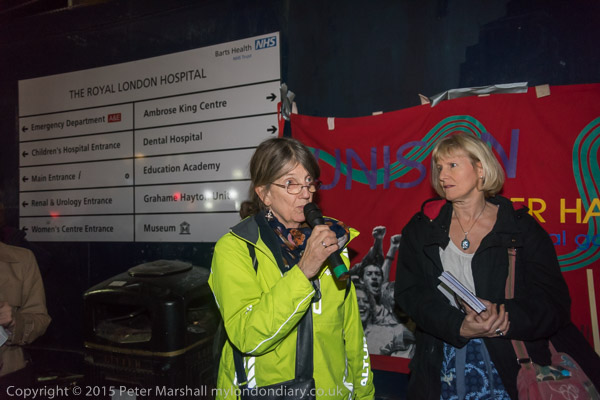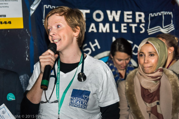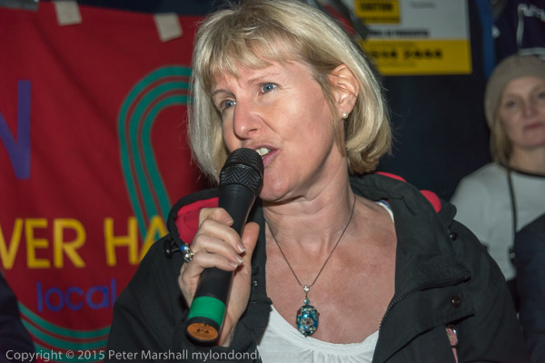 Maggie Falshaw of the 'Save Our Surgeries' campaign against cuts in payments to surgeries in Tower Hamlets