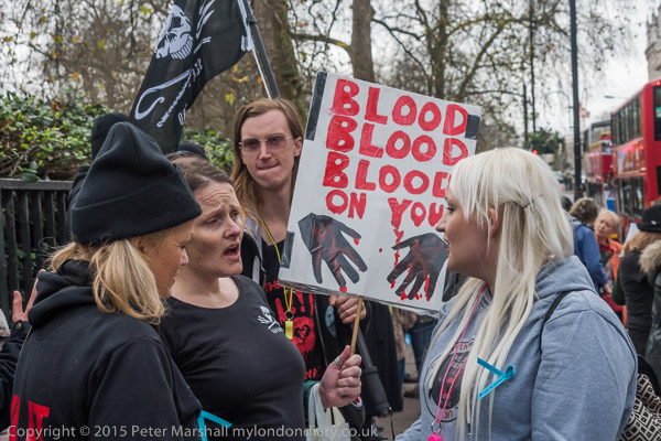 On the other side of the road were police officers in front of the embassy and a protester against whaling who was several hours early