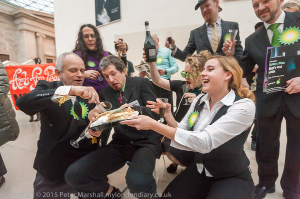 or as the protesters might put it, 'greenwashing' their very dirty, oily, reputation