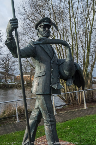 ![]() The Swan Upper in its new location by the Thames is one of the better artworks on the Staines Art Walk ![]() which recently been relaunched. This is The River Guardian looking across at the Swan Hotel ![]() The Swan and The Hythe are both in Egham ![]() The boundary between Staines and Egham runs under the bridge and along the depression here on the Surrey bank ![]() and these buildings are in Staines . I think this dock was designed for use by the Sea Scouts who never really got to use it ![]() a fishy boat on the Thames ![]() and the waterworks at Egham which has a large intake from the River Thames ![]() ![]() There were no 'Fishing Fanatics' on this stretch of the Thames on Boxing Day, but they had left their mark ![]() |