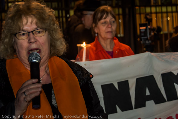 London's Green MEP Jean Lambert speaking - as she has at many protests calling for Shaker to be released