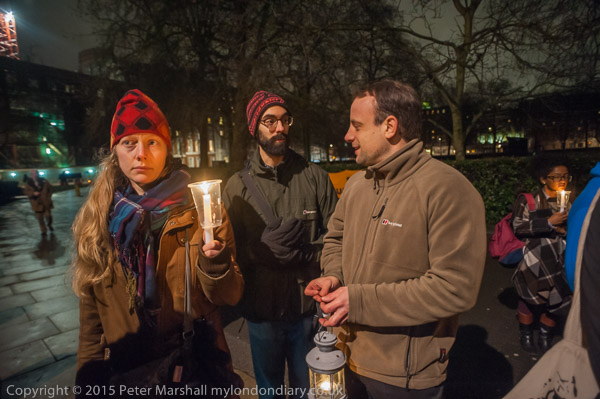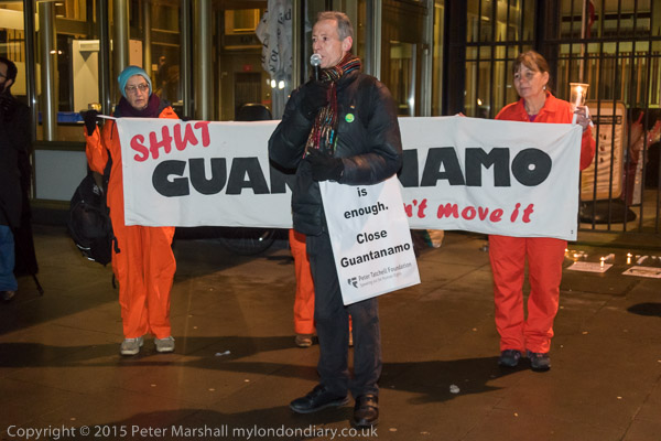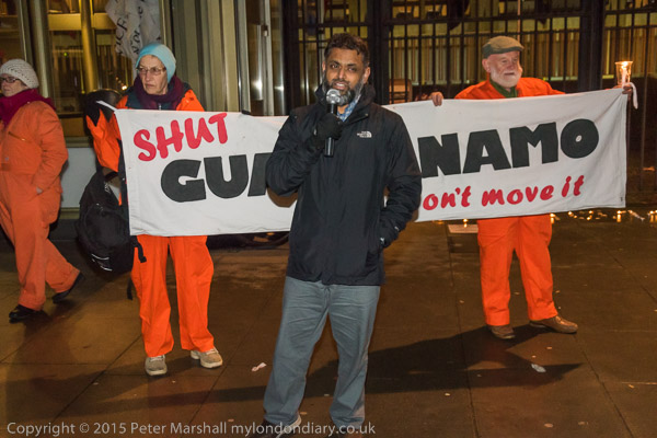Another regular protester with the Save Shaker Aamer and other campaigns in orange jump suit and chains
