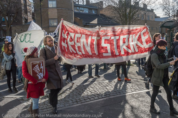 Students at UCL are taking part in a rent strike and brought their '#Rentstrike' banner