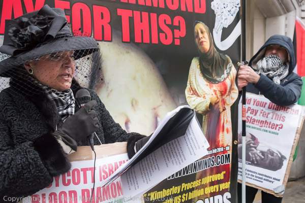 Protesters call for a boycott of Israeli Blood Diamonds