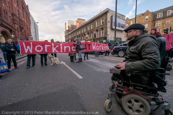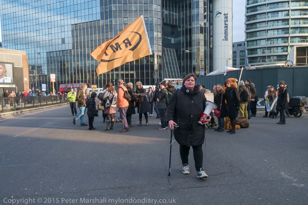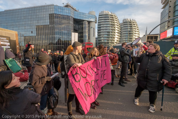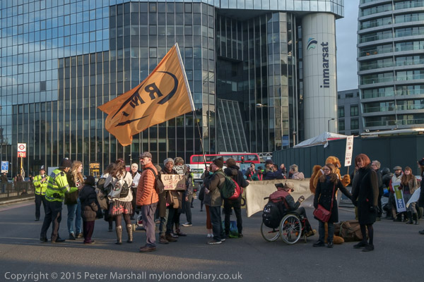 The protesters are in two groups, on the Old St roundabout and others blocking the route off the roundabout up City rd