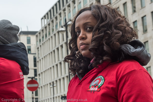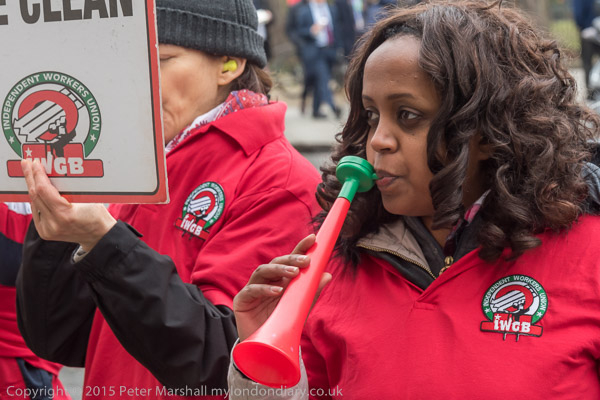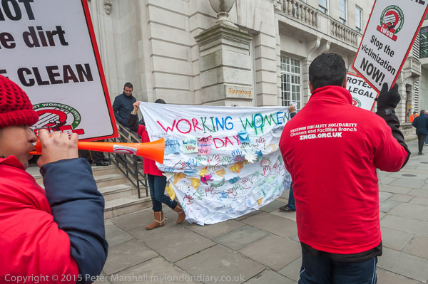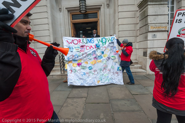 Beatriz brings solidarity form the nearby offices where she is the shop steward