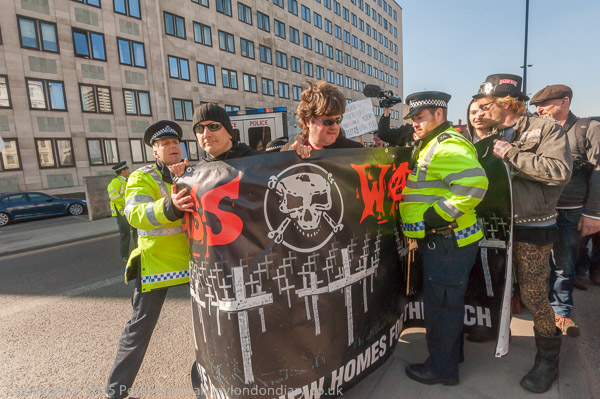 Class War let any marchers with Labour banners know what they think of how Labour boroughs such as Lambeth,