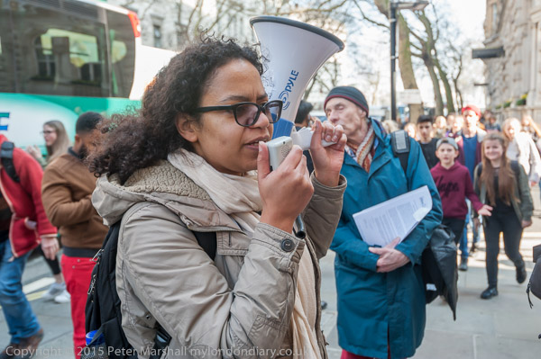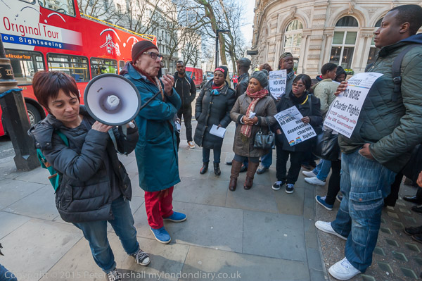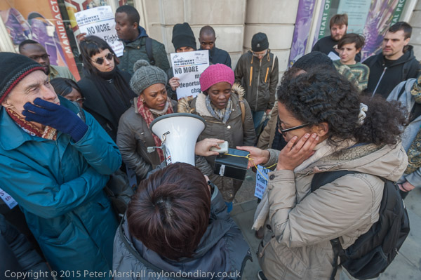 A phone converstaion from someone in Yarls Wood is relayed over the megaphone