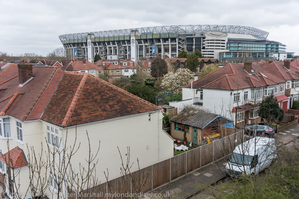 ![]() Twickenham rugby stadium ![]() ![]() ![]() Twickenham Rugby stadium from Great Chertsey Rd footbridge ![]() Great Chertsey Rd ![]() The line to Reading and Windsor from Twickenham ![]() The River Crane leaves from Kneller Park over a weir ![]() 1930s flats in Meadway |