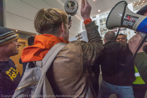The protesters don't attempt to go past the barriers, which could easily have been vaulted over, but stay