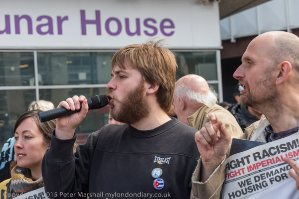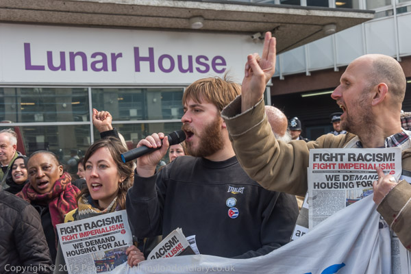 Two young boys chant some slogans at the protest. Their family has suffered several evictions and may face
