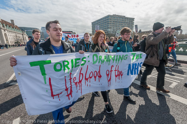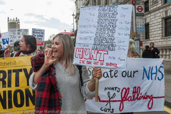 Danielle of BursaryOrBust calls for the march to the Dept of Health to start. 'Florence Nightingale' is already waiting to go