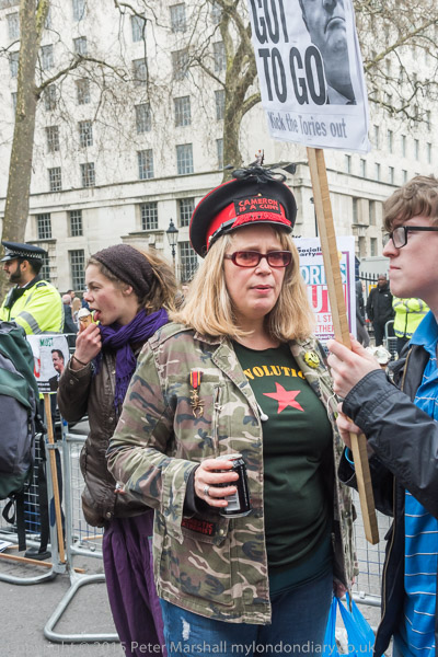Most of the protesters had left Downing St by the time I called back around 4pm, but some were still blocking Whitehall in one direction and partying