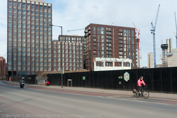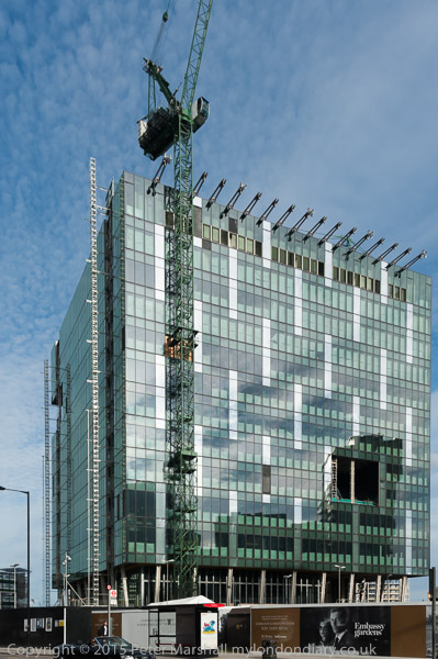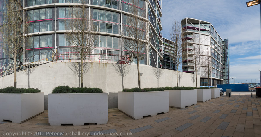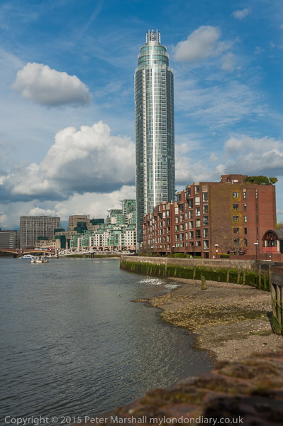 Finally St George Wharf Tower will fit in an image. In front is Riverside Court, the first of the riverside flat developments