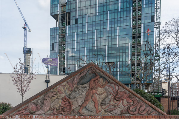 Old Father Thames at Nine Elms, a polychrome relief designed by Stephen Duncan in 1988