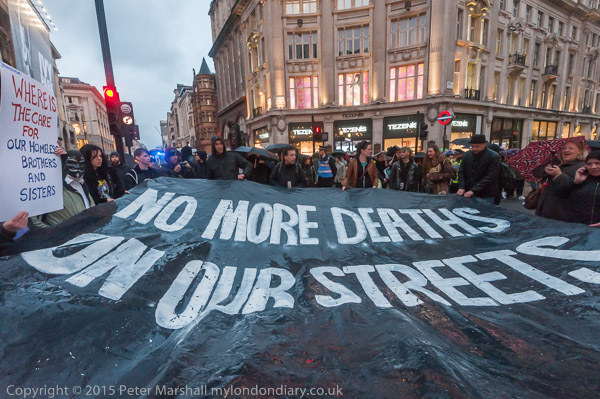 And the huge banner is now easy to read: 'No More Deaths On Our Streets'