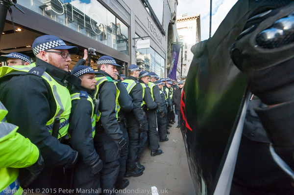 The protesters decide to move, and stand briefly in the middle of Oxford Circus
