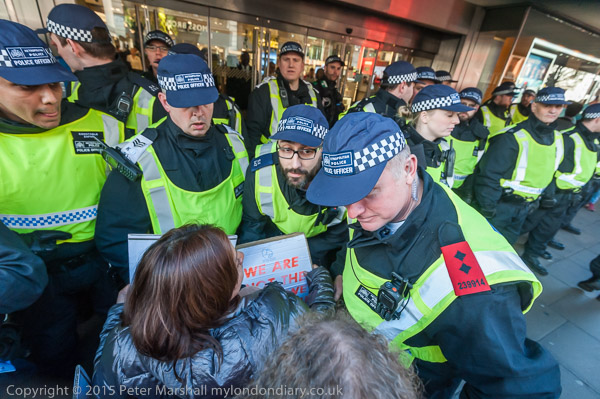 Police move away after the protesters who are going back to Topshop. But It's time for me to go home.