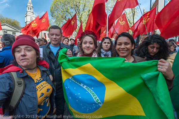 The Brazilians behind me were excited when he condemned the attempt to impeach President Dilma Rousseff