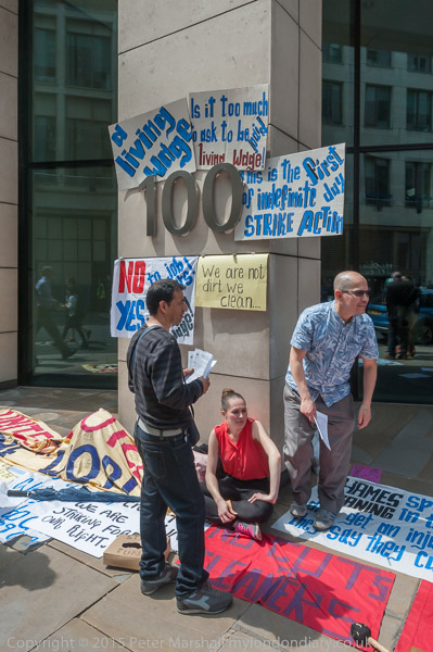but the picket and protest were peaceful and lawful, making the case for the cleaners. A banner on the pavement