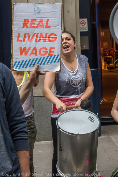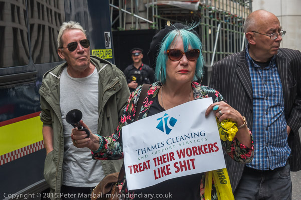 along with the other which says 'Thames Cleaning Sack Staff who ask for a living wage'