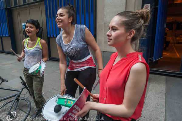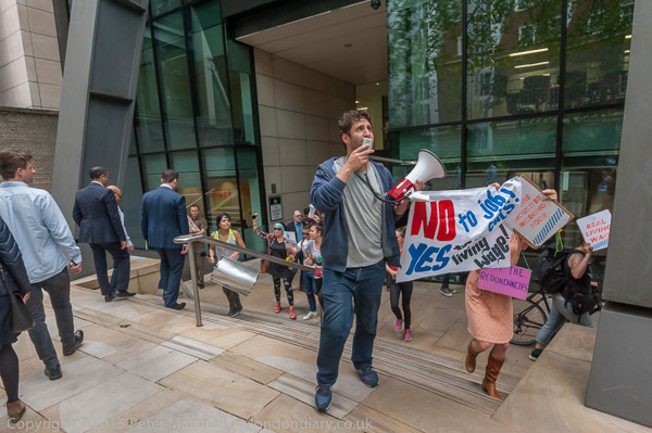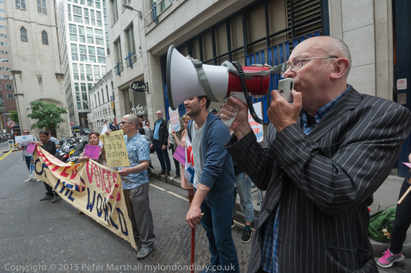police watch the protest - taking place just a few yards from the City of London police HQ