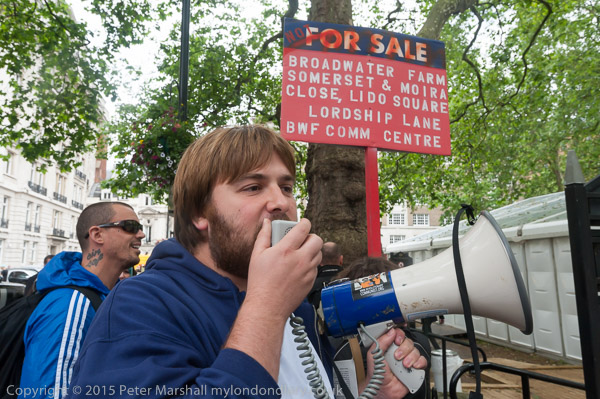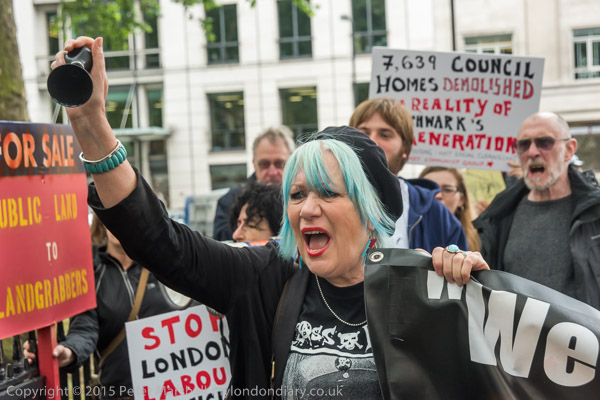 Sid Skill points out someone from Southwark Council leaving the event - Southwark have demolished 7,639 council homes