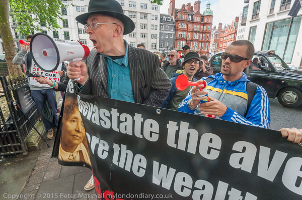 Peter Murray of New London Architecture stops briefly to look at the protest as he leaves the forum
