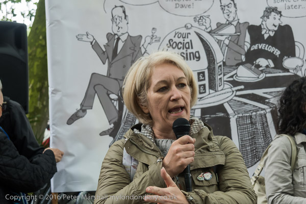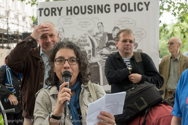 Tanya Murat of Southwark Defend Council Housing introduces the speakers before the march