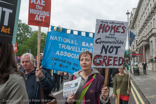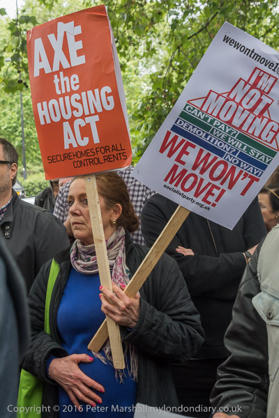 The main banner at the front of the march 'Axe the Housing Act - Secure Homes for all - Control rents'