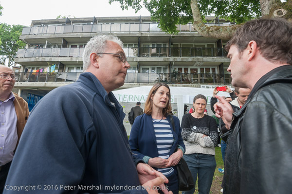 Simon Elmer of Architects for Social Housing asks Helen Hayes MP why she is at the Open Estates event