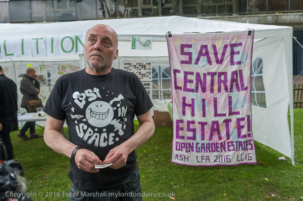 A film is shown about how Southwark, a neighbouring Labour council mistreated residents in the redevelopment of Myatt Fields