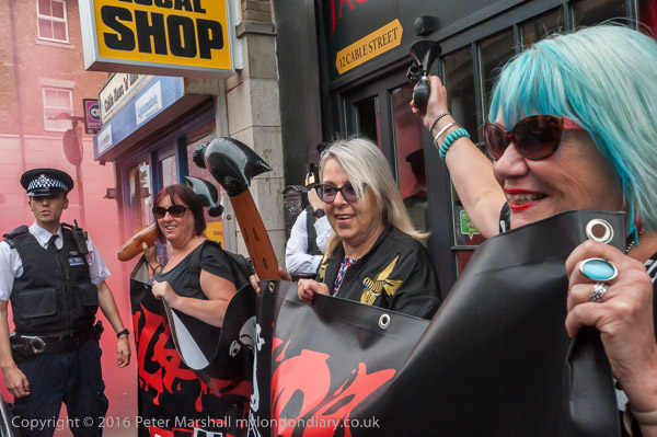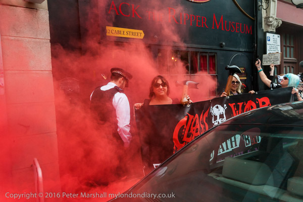Ian Bone tried to go into the shop, but is stopped by police. The 'Local Shop' sign is for the shop next door the the 'Ripper'