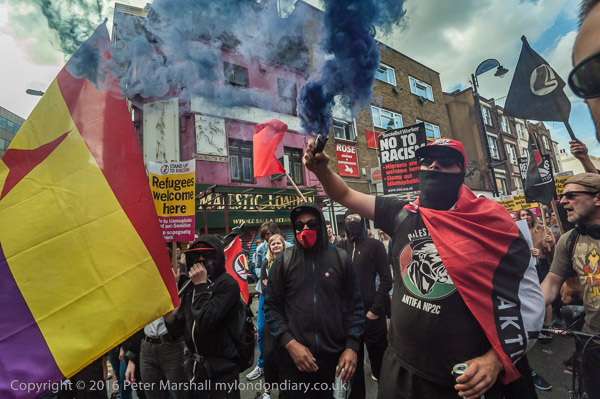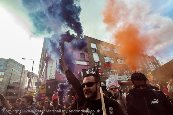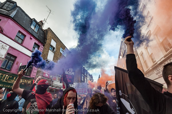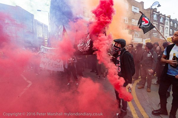 The march stopped for everyone to catch up on Middlesex St - and to set off more flares