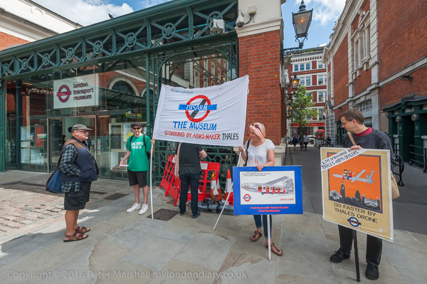 Campaign Against Arms Trade, London protesters call on the LT Museum to end sponsorship by arms maker Thales