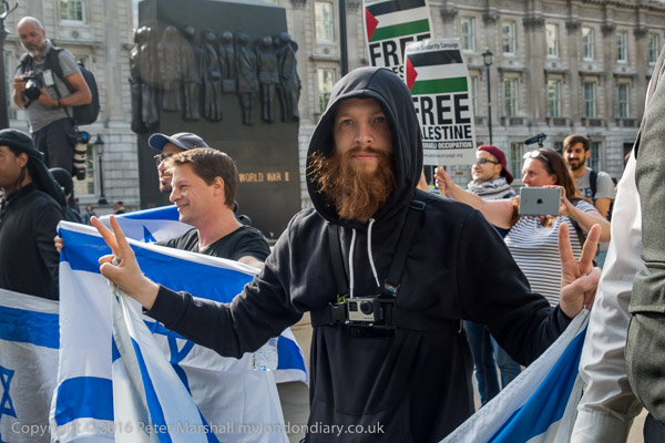 Neturei Karta Jews arrive to support the protest. The say 'Jews true to their fiath WIll Never Recognise Zionist