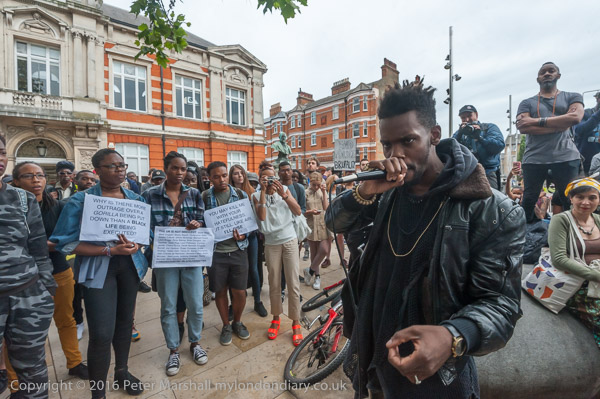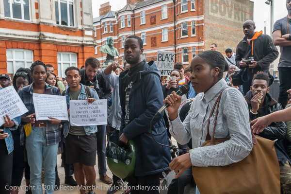Later people marched through the high street up to Brixton Police station and protested there. I'm