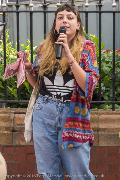 A woman who organises to help the street homeless in Newham speaks at the rally